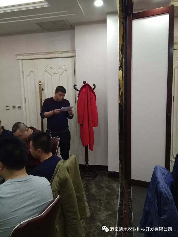 酒泉凱地農(nóng)業(yè)總經(jīng)理薛治軍先生代表公司向全體員工及家屬致新春賀辭:大家過年好!在這新春佳節(jié),美好的日子里,酒泉凱地農(nóng)業(yè)、甘肅酒玉種業(yè)隆重舉行“2017年度優(yōu)秀員工表彰大會及新春團(tuán)拜會”,我代表公司向所有同事及家屬拜個(gè)晚年,祝大家新春快樂,身體健康,工作順利,闔家歡樂。
