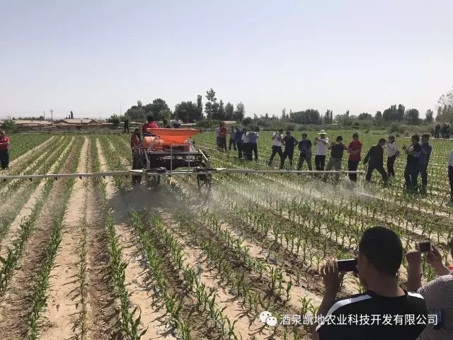 我們酒泉富民裕國農(nóng)業(yè)技術(shù)推廣專業(yè)合作社和酒泉凱地農(nóng)業(yè)科技開發(fā)有限公司,于2017年6月1日在種業(yè)玉米制種基地上進(jìn)行了從巴西捷科多公司進(jìn)口的大黃蜂3WPZ500自走式噴藥施肥兩用機(jī)和加能炮AJ-401噴藥機(jī)以及無人飛機(jī)的 植保聯(lián)防演示。現(xiàn)場會邀請了市區(qū)兩級植保站、經(jīng)管站和農(nóng)業(yè)局主要領(lǐng)導(dǎo)參加,各種業(yè)公司、酒泉農(nóng)墾公司、西域陽光番茄制品公司、大業(yè)草業(yè)公司、北京新禾豐、興農(nóng)辣椒公司及種植大戶約200余人觀摩了本次演示。