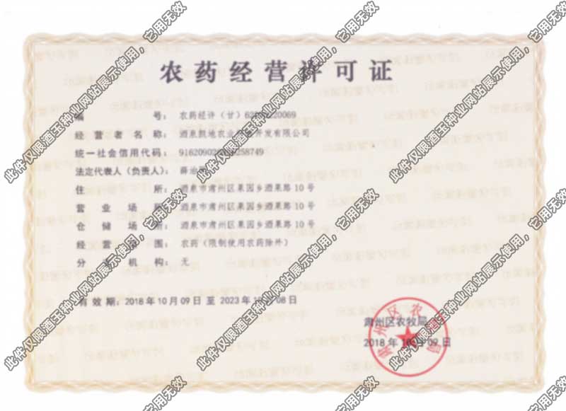 凱地農(nóng)業(yè)農(nóng)藥經(jīng)營(yíng)許可證